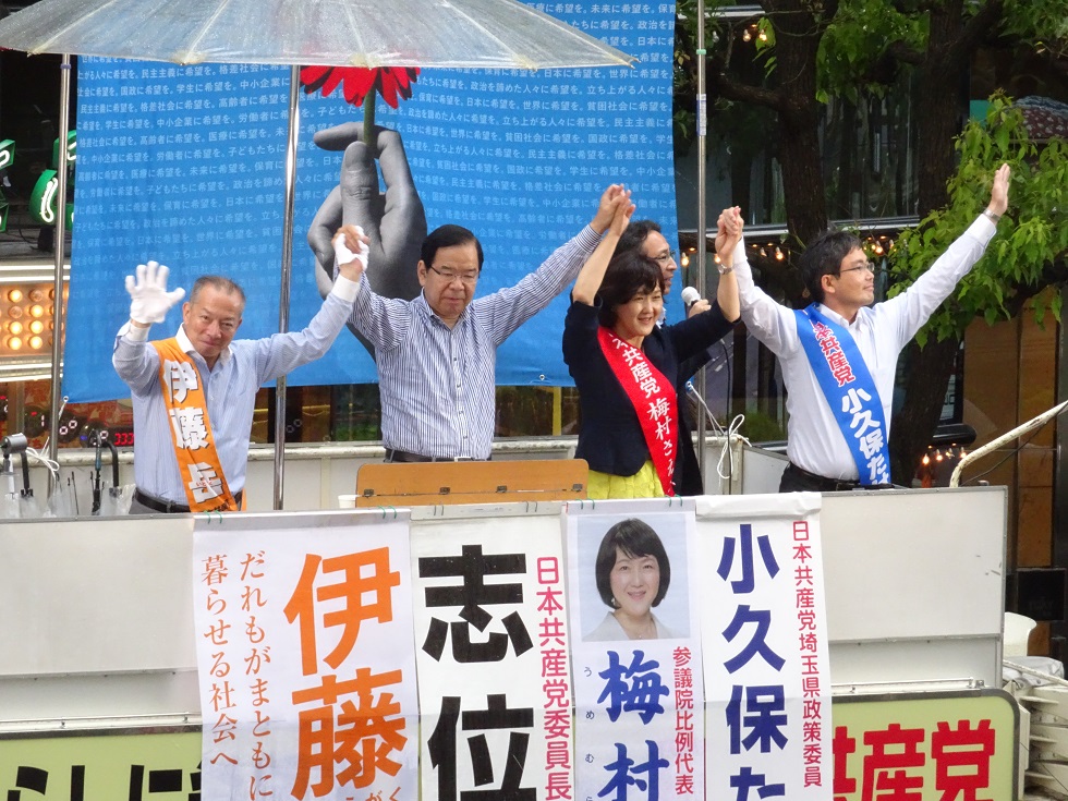 七夕の7日(昨日)はあいにくの雨でしたが、大宮駅西口は、日本共産党街頭演説の聴衆で大変盛り上がりました。