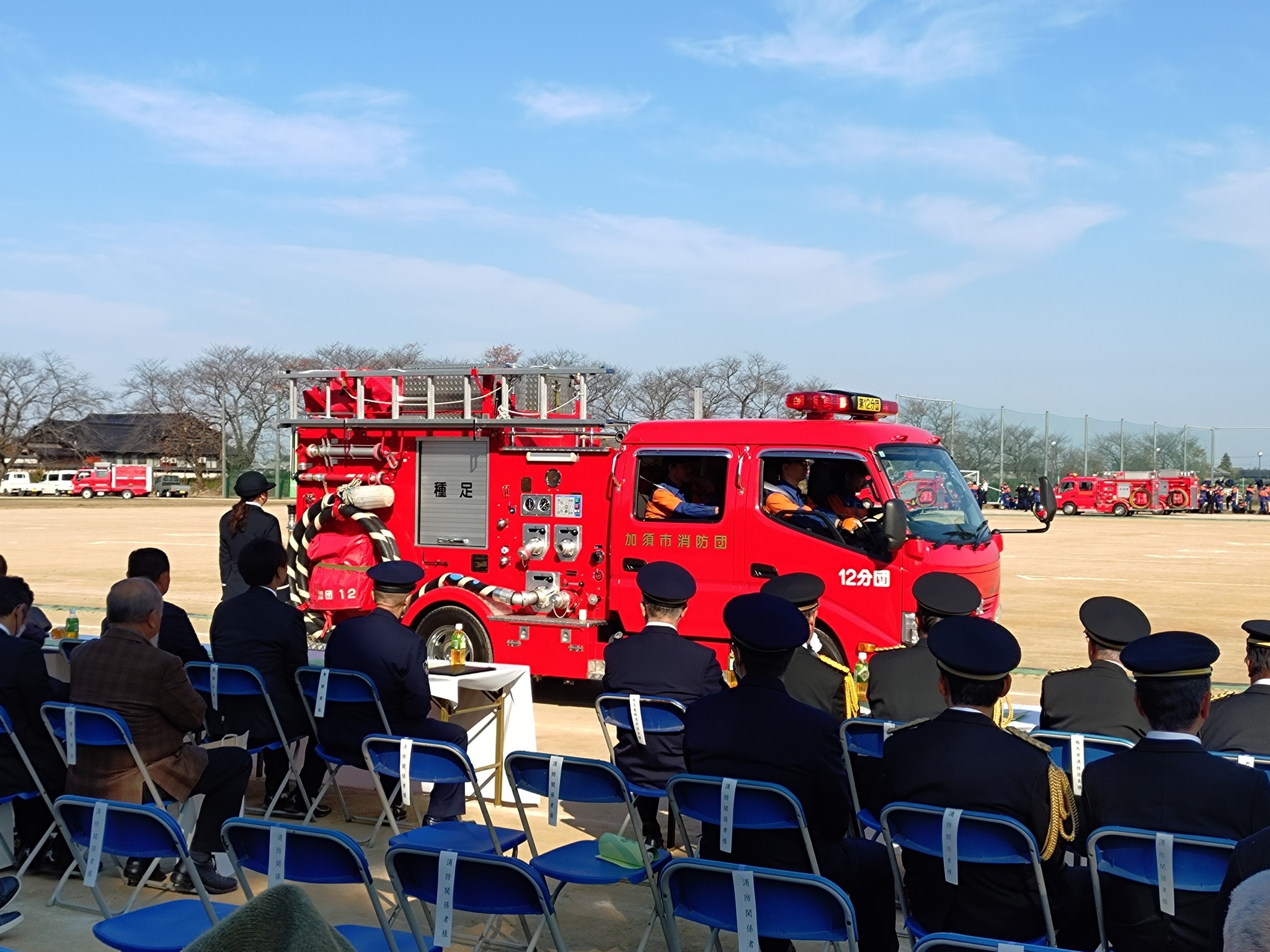 穏やかな晴天のもと、火災シーズンの冬の到来を前に、災害に備えて消防特別点検が加須市民運動公園で開催されました。