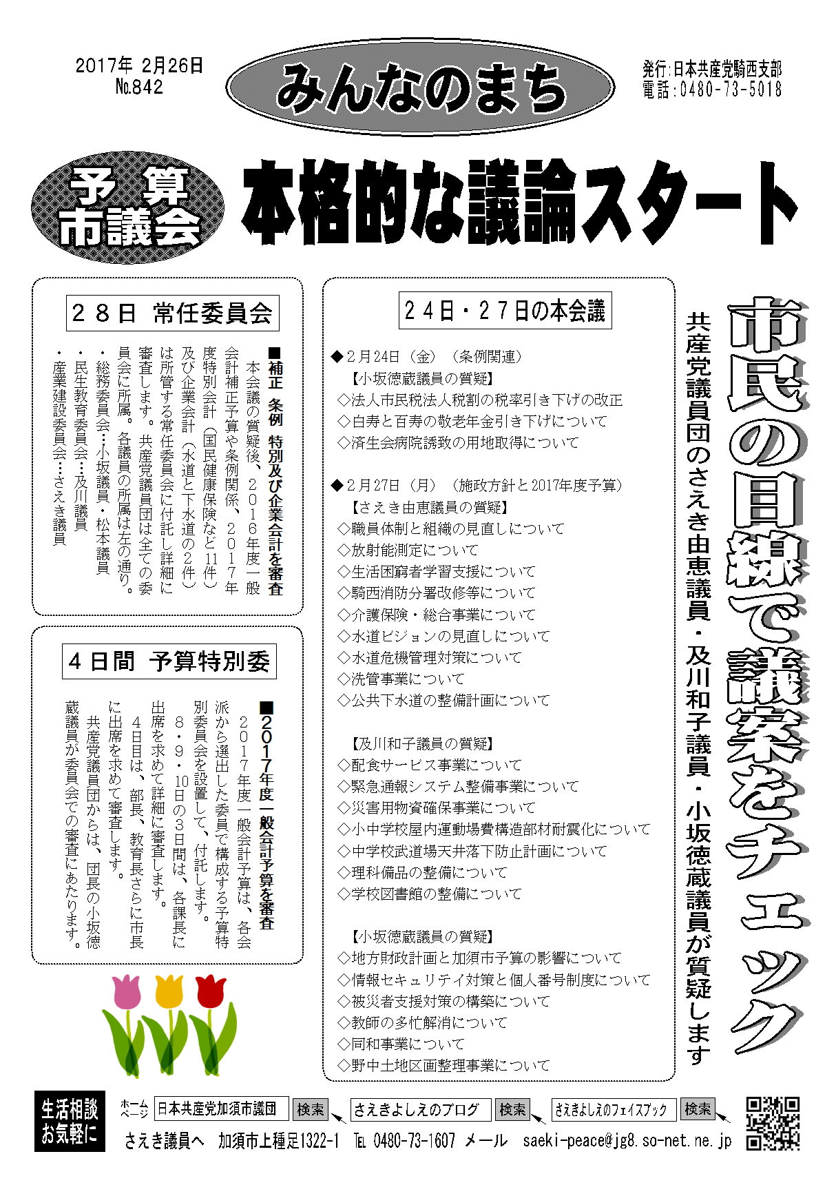 「埼玉一の米どころ」「こいのぼり」「梨・イチジク・いちご」のまち・加須市。市議会議員のさえきよしえのブログです。議会報告や日々の活動の様子を報告しています。