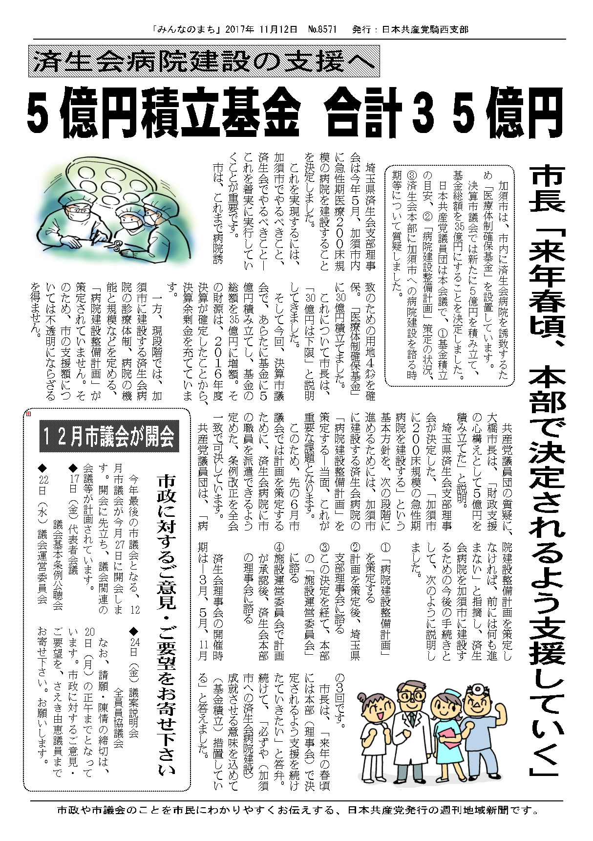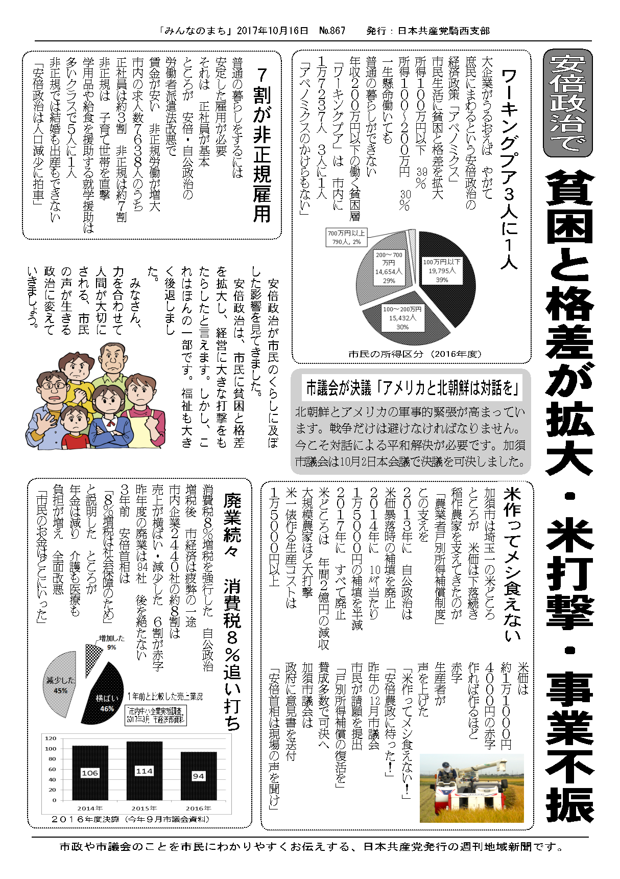 "週刊「新加須」"カテゴリーの記事一覧 みんなのまち 11/26 №872 みんなのまち 11/12 №871 みんなのまち 11/05 №870 みんなのまち 10/29 №869 週間地域新聞№869「総選挙報告」を発行しました。 総選挙ではあたたかいご支援ありがとうございました。 いよいよこれからがスタートです。 日本共産党は、市民と野党の共闘を前進させながら 日本共産党を躍進させる、これが次の目標です。 みんなのまち 10/19 №868 みんなのまち 10/17 №867 「安倍政治で市民のくらしはどうなったでしょうか?」 みんなのまち 10/8 №866