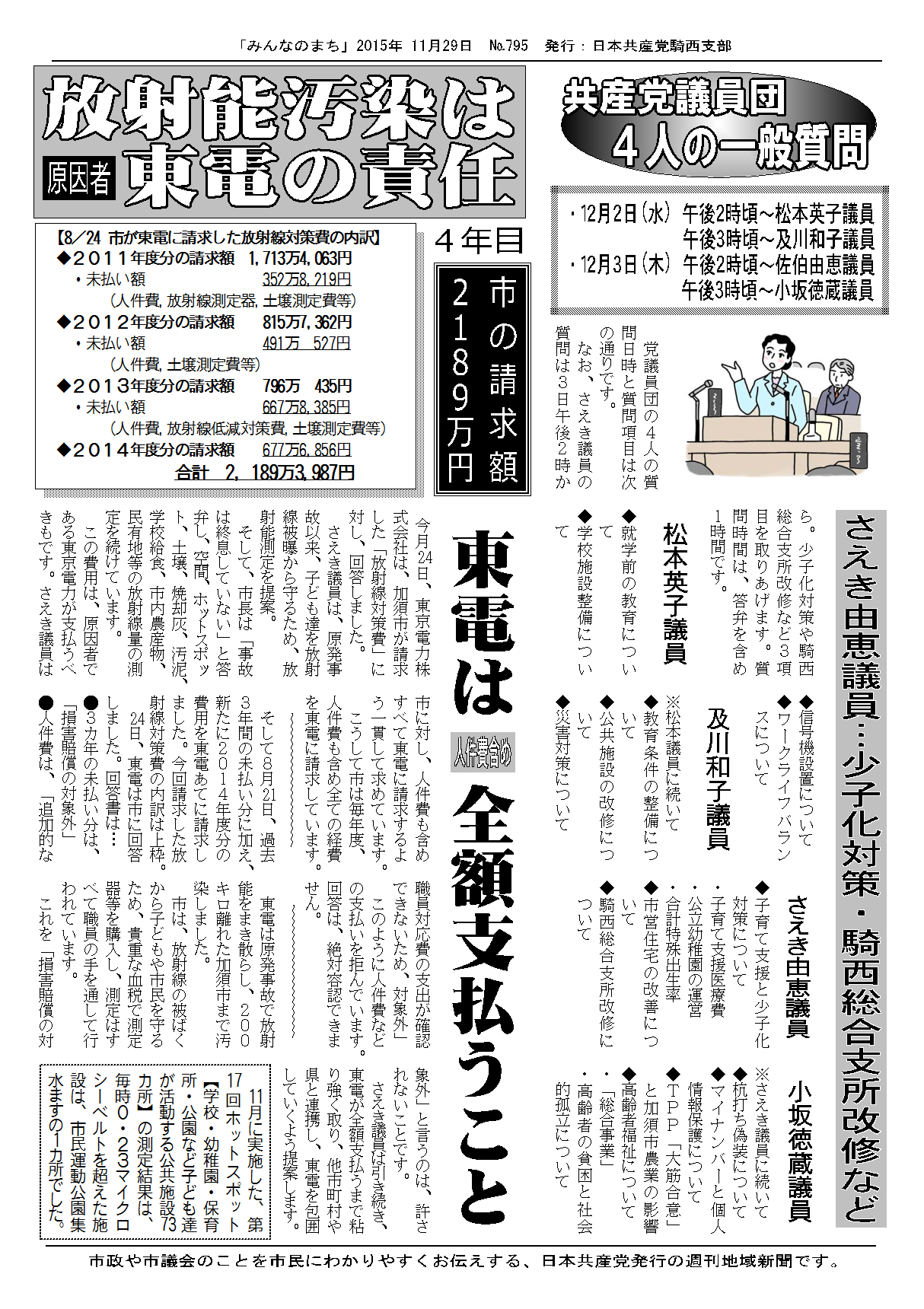 こうして市は毎年度、人件費も含めすべての経費を東電に請求。今年8月21には、過去3年間の未払い分に加え、新たに2014年度分の費用を東電あてに請求しました。