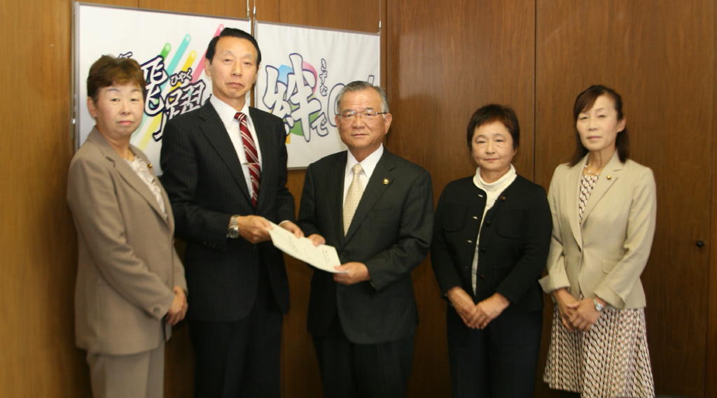 「市民の声と願い実現を」―日本共産党議員団(以下は党議員団)の私、小坂徳蔵議員、松本英子議員、及川和子議員の4人は先月5日、市役所の市長室で大橋良一市長に会って「2016年度加須市予算編成に対する要望」を手渡し、懇談しました。