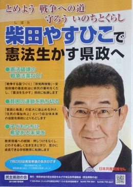 弁士は、県知事予定候補の柴田やすひこ氏。そして、前埼玉済生会栗橋病院院長補佐・外科医師の本田浩氏をはじめ各界から推薦のことば、さらに教え子や保護者から激励のことばなど。