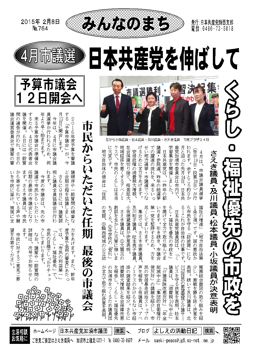 予算市議会が開会中です。会期は、今月12日~来月12日までの29日間。審議する議案は、2015年度予算をはじ2014年度補正予算や条例などの計47議案です。