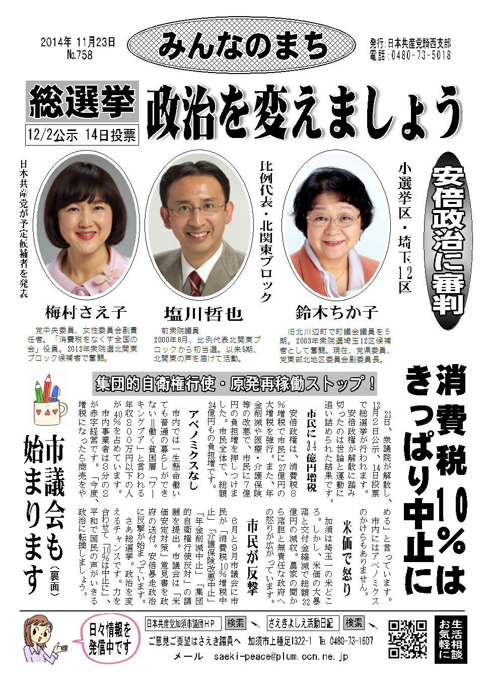 「埼玉一の米どころ」「こいのぼり」「梨・イチジク・いちご」のまち・加須市。市議会議員のさえきよしえのブログです。議会報告や日々の活動の様子を報告しています。