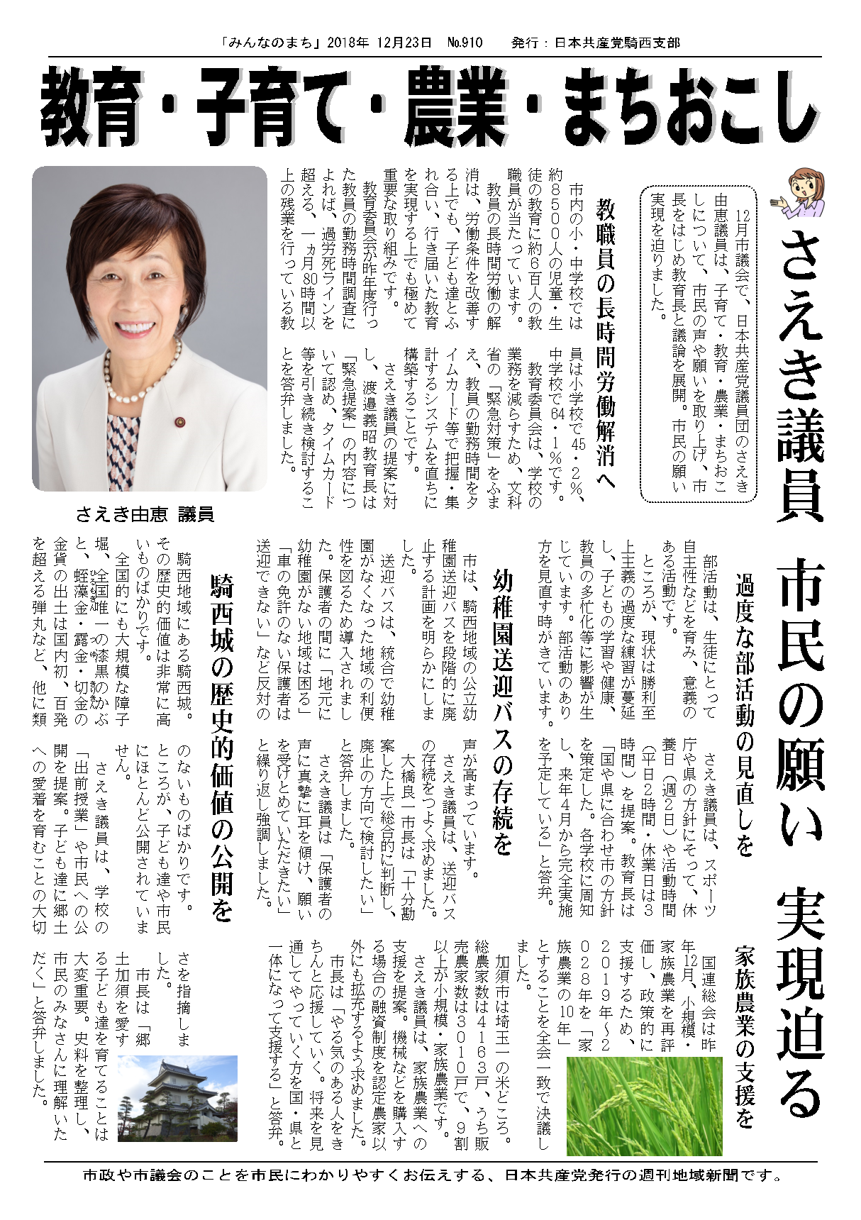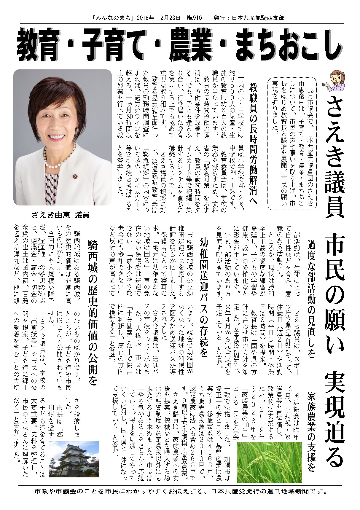 経済部長は「国連は2019年〜2028年を『家族農業の10年』と定め、加盟国及び関係機関等に対し、食料安全保障確保と貧困撲滅に大きな役割を果たしている家族農業への施策の推進、知見の共有を求めています。市は国と同様、家族農業は地域農業の担い手として重要と間がエア、様々な支援に取り組んで参りたい」と答弁しました。
