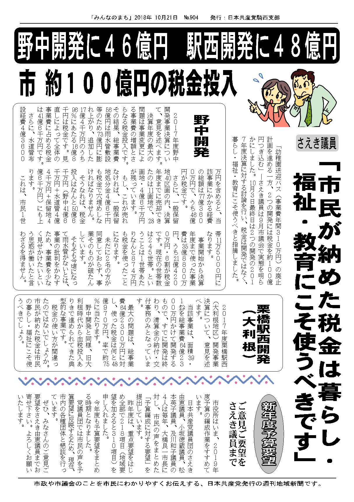 ・11月上旬 党議員団 「2019年度予算要望」作成