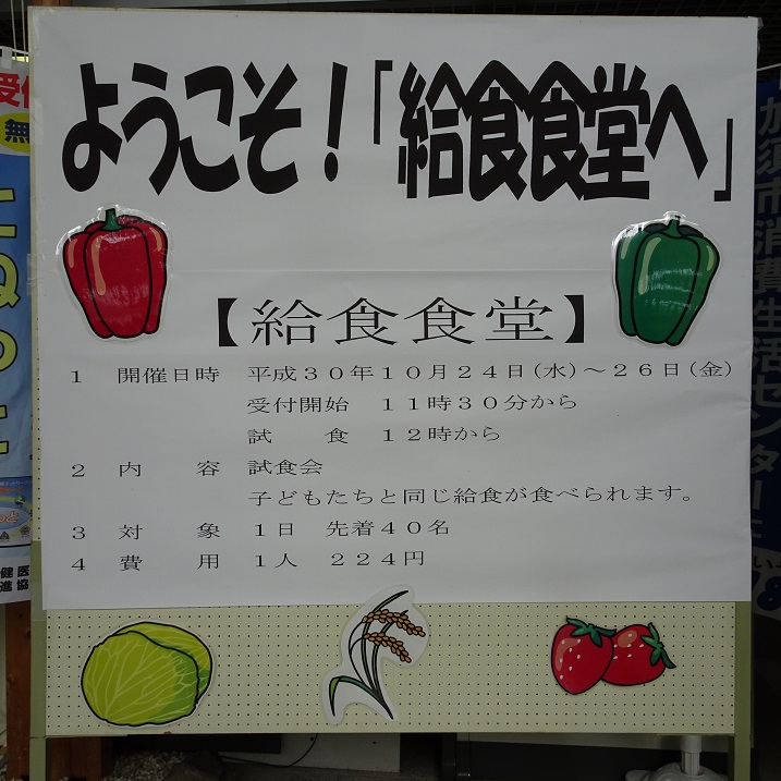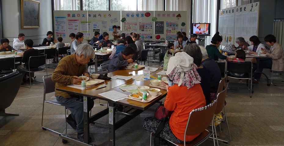 「給食食堂」が市役所ロビーで