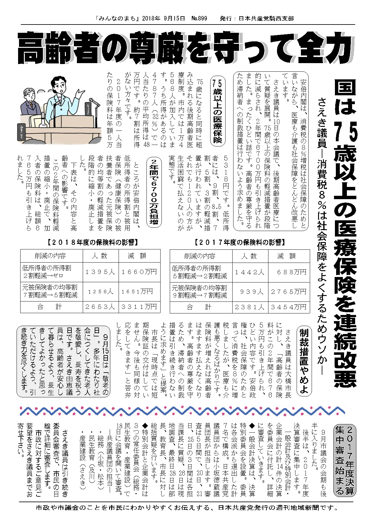 私は10日の本会議で、後期高齢者医療について質疑を展開。高齢者の保険料の軽減措置が段階的に減らされ、この2年間で6,765万円も引き上げられました。まったくひどい話です。