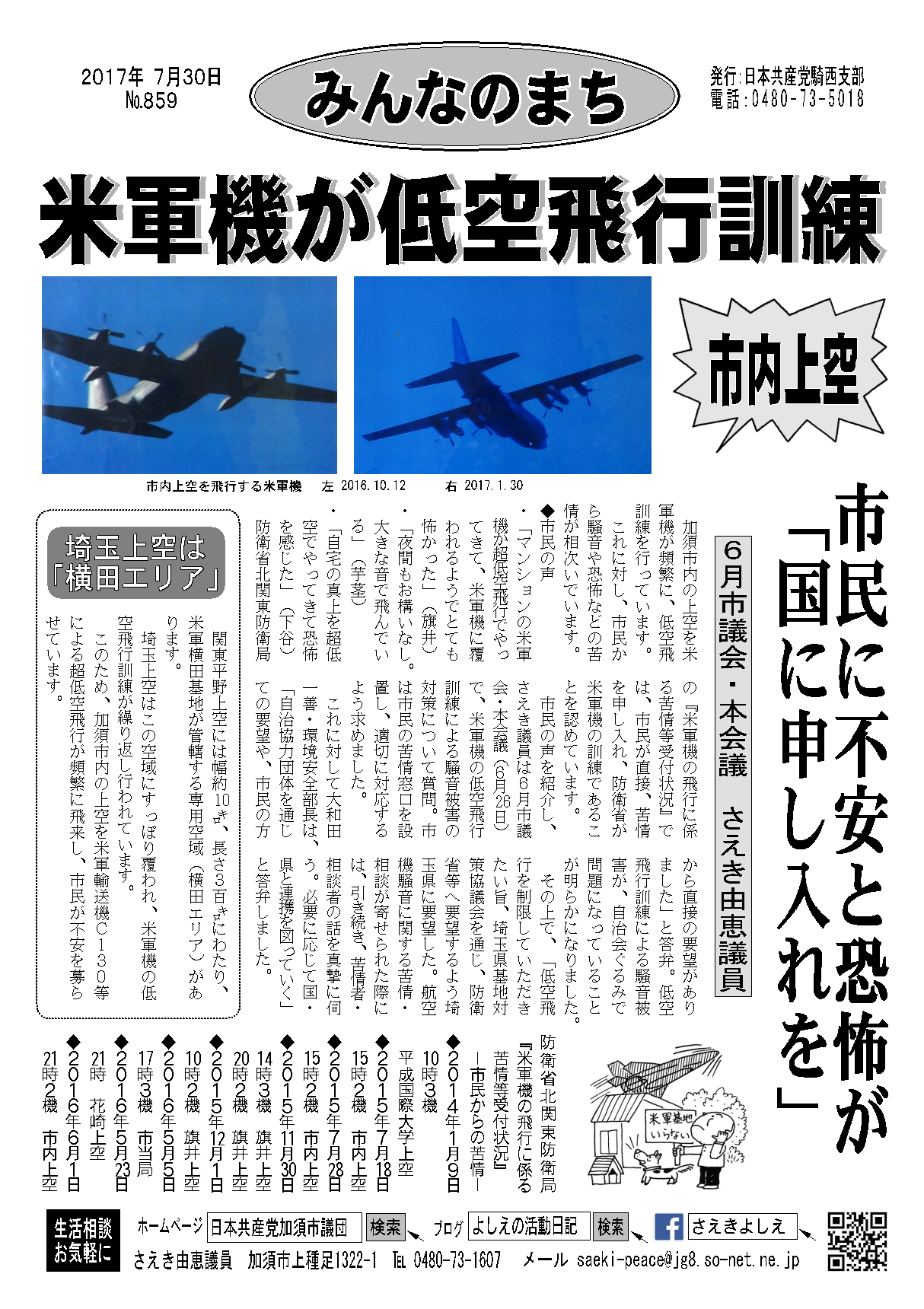 ◆2012年夏以降、埼玉で米軍機による低空飛行が相次いで目撃されている