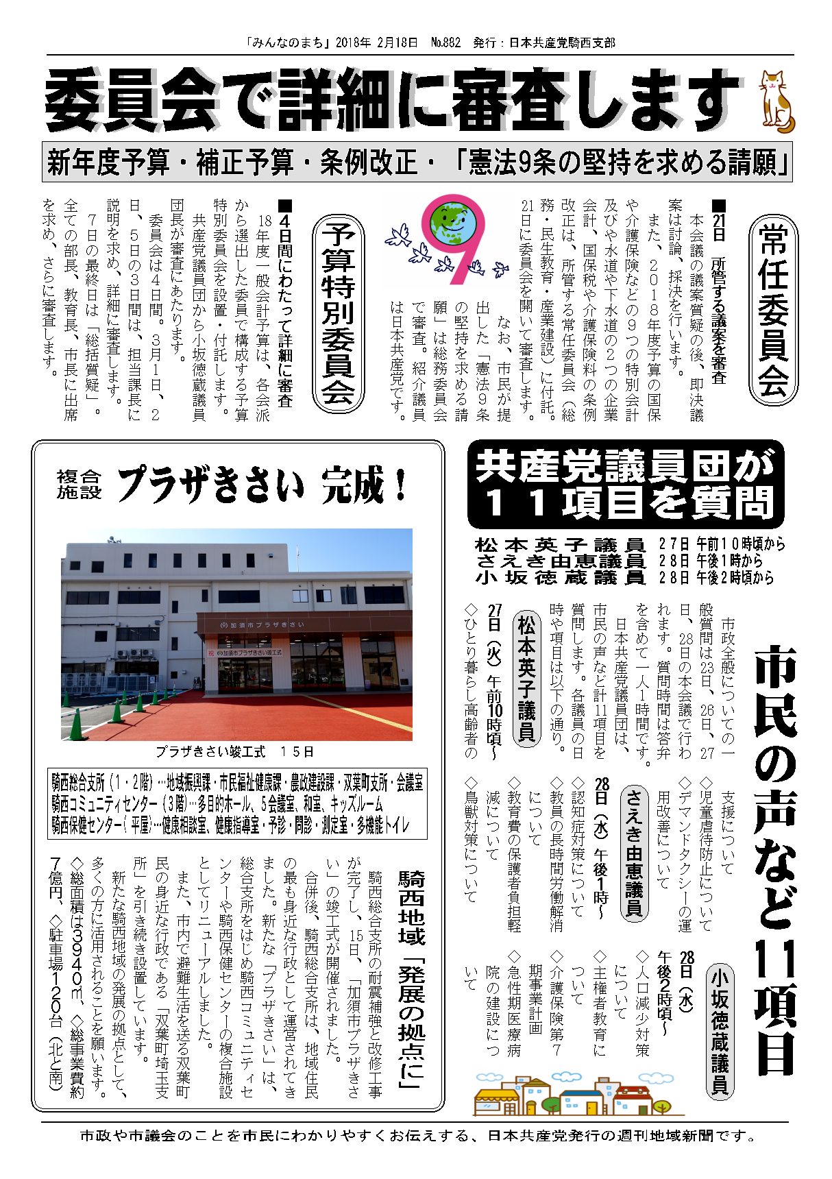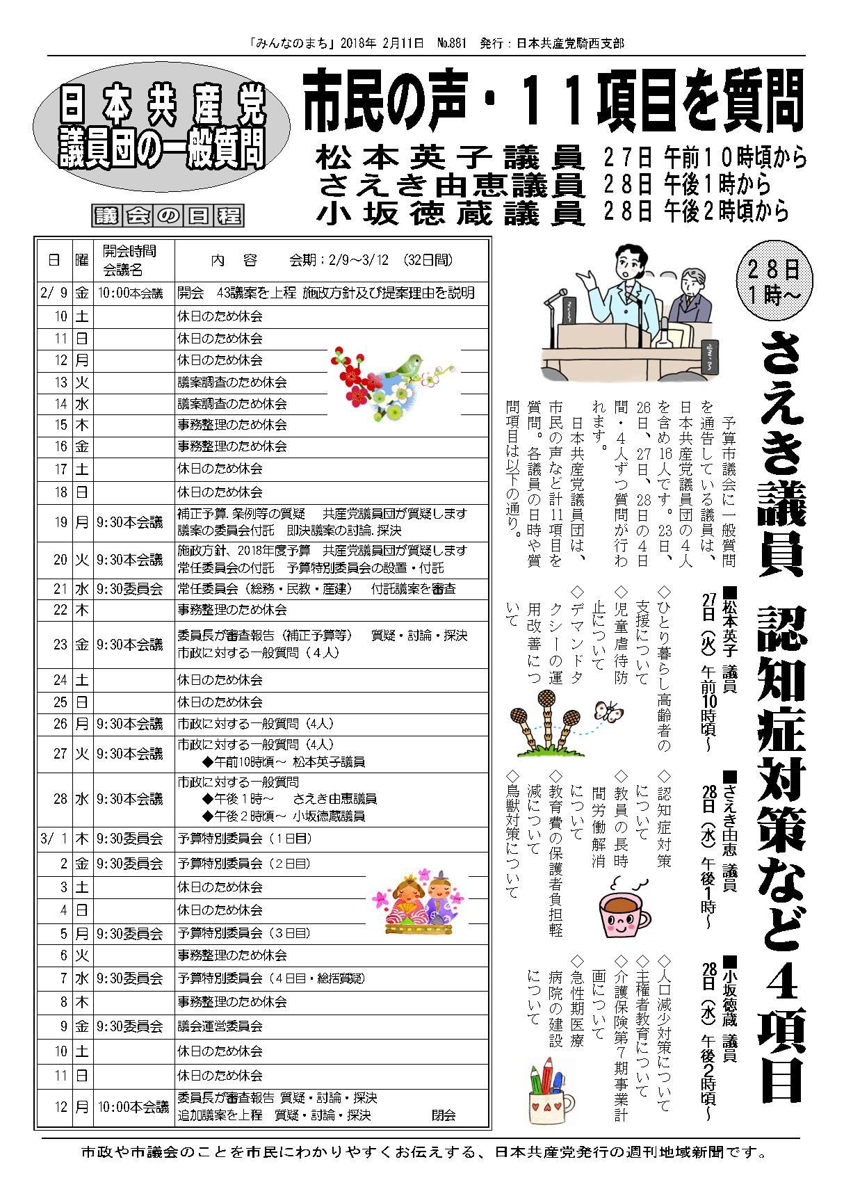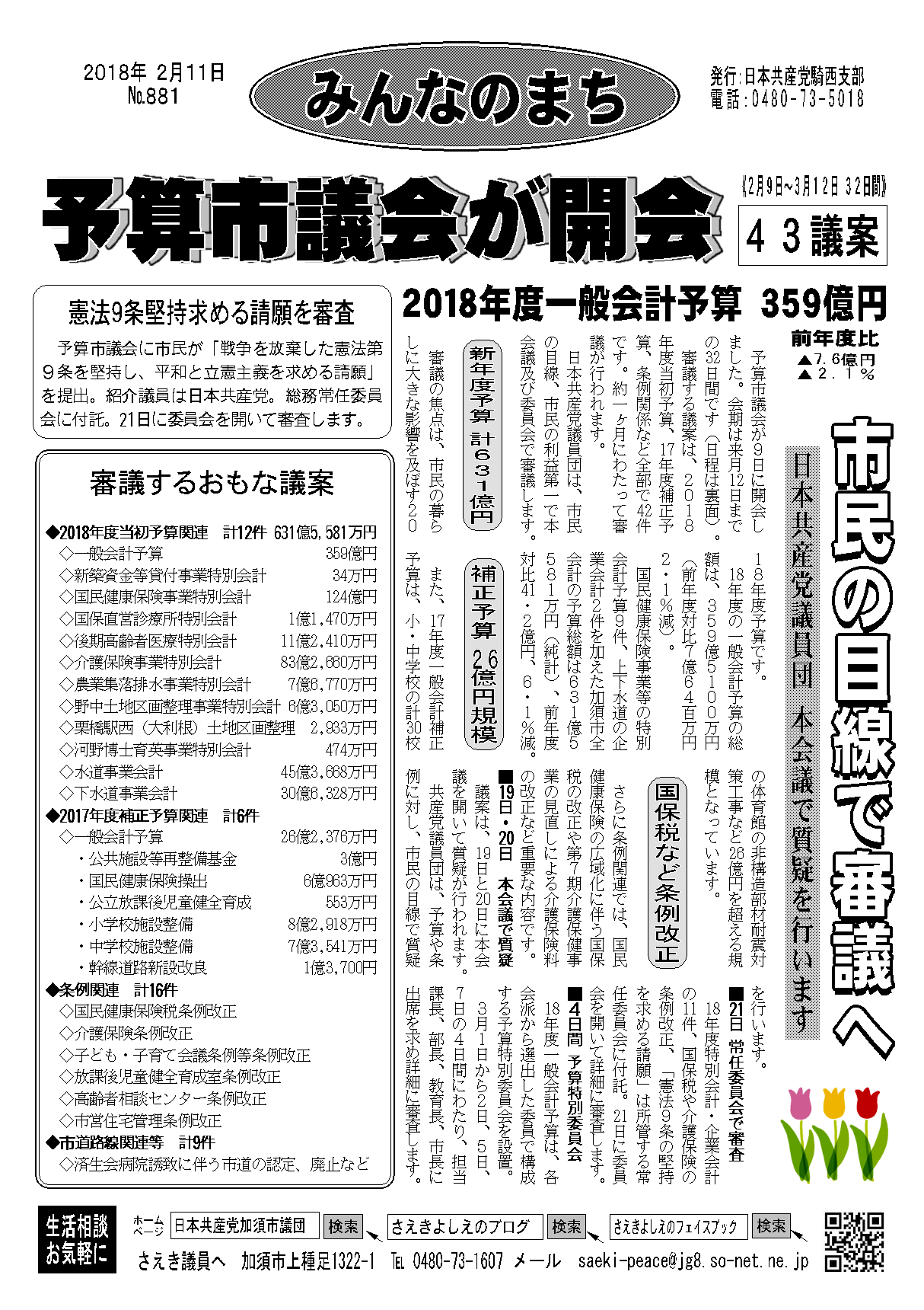 私は、施政方針・新年度予算及び国保税改正など8議案について、市民の目線で議案を審査します。質疑項目は以下の通りです。