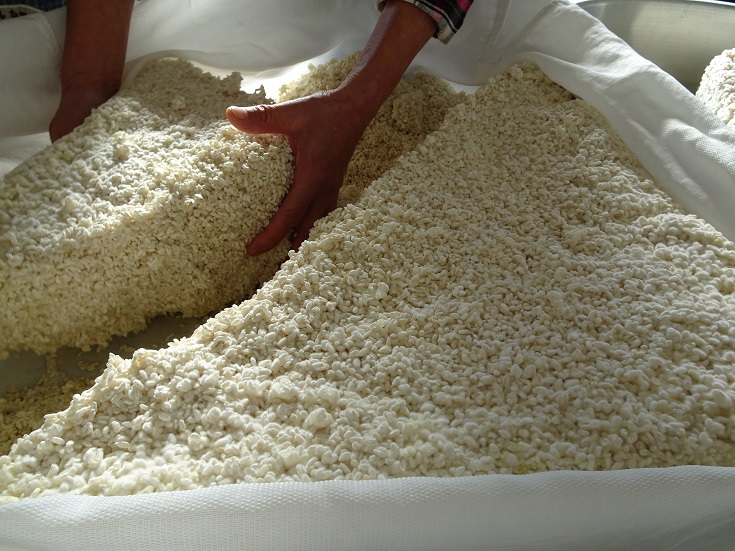 5年前、コシヒカリの産地をランクアップしたという発想から酒米を作り始めたのがきっかけ。はじめての取り組みで失敗・反省。3年かけてようやく実った。今では6㌶生産し、酒蔵は3つ。釜屋さんと奇跡的な形でつながった。今年4月に、市の特産ブランドに応募し、認定された。県内には35の酒蔵があり、全国で第4位。コシヒカリと並ぶ酒米つくりの産地にしたい。きびしい挑戦だが、負けないで必ず展望を持って取り組んでいきたい。