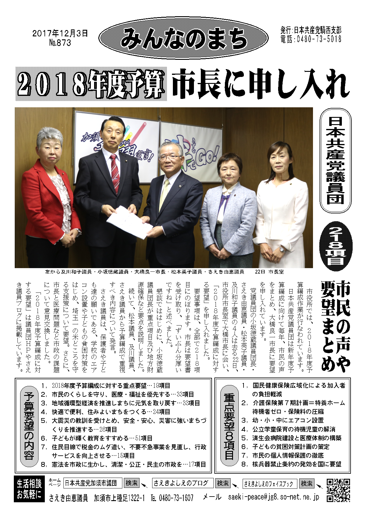 私は、市内で生まれたすべての子ども達が、自分の可能性を信じ、希望に向かって、人生を切り開いて行けるよう、市長として、最善を尽くしていただきたいと考えます。