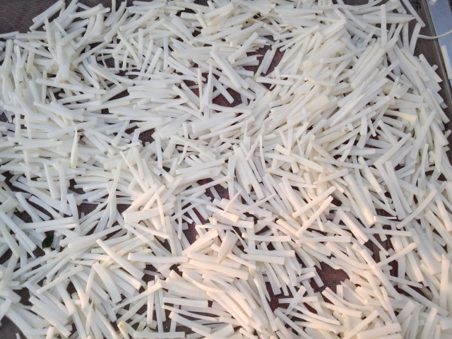 昨日から、実家の母の切り干し大根作りが始まりました。毎年たくさん作ります。手作りは歯ごたえがあって味が良くしみこみとっても美味しいです。一週間もすると煮物で食卓に並びます。