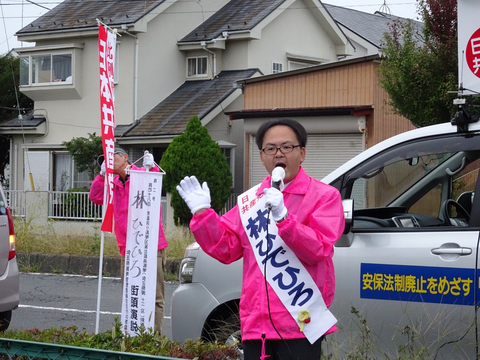 続いて、日本共産党議員団長の小坂徳蔵氏が選挙情勢を報告。小坂氏は「加須市の有権者は、未だおよそ6割の人は投票する人を決めていない。前回衆院選の投票率は50.5%だった。最後まで頑張る、それが勝利のカギになる」と心を込めて訴えました。