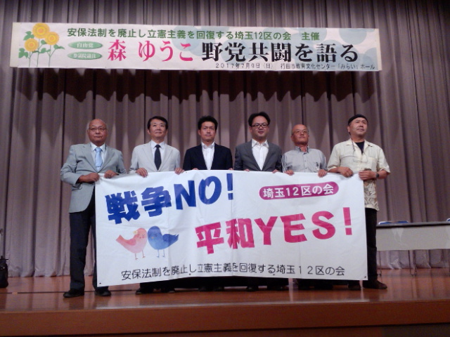 講演する森ゆうこ議員 9日、「安保法制を廃止し、立憲主義を回復する埼玉12区の会」(「埼玉12区の会」)は、行田市教育文化センターみらいを会場に「森ゆうこ、野党共闘を語る」を開催。私も参加しました。