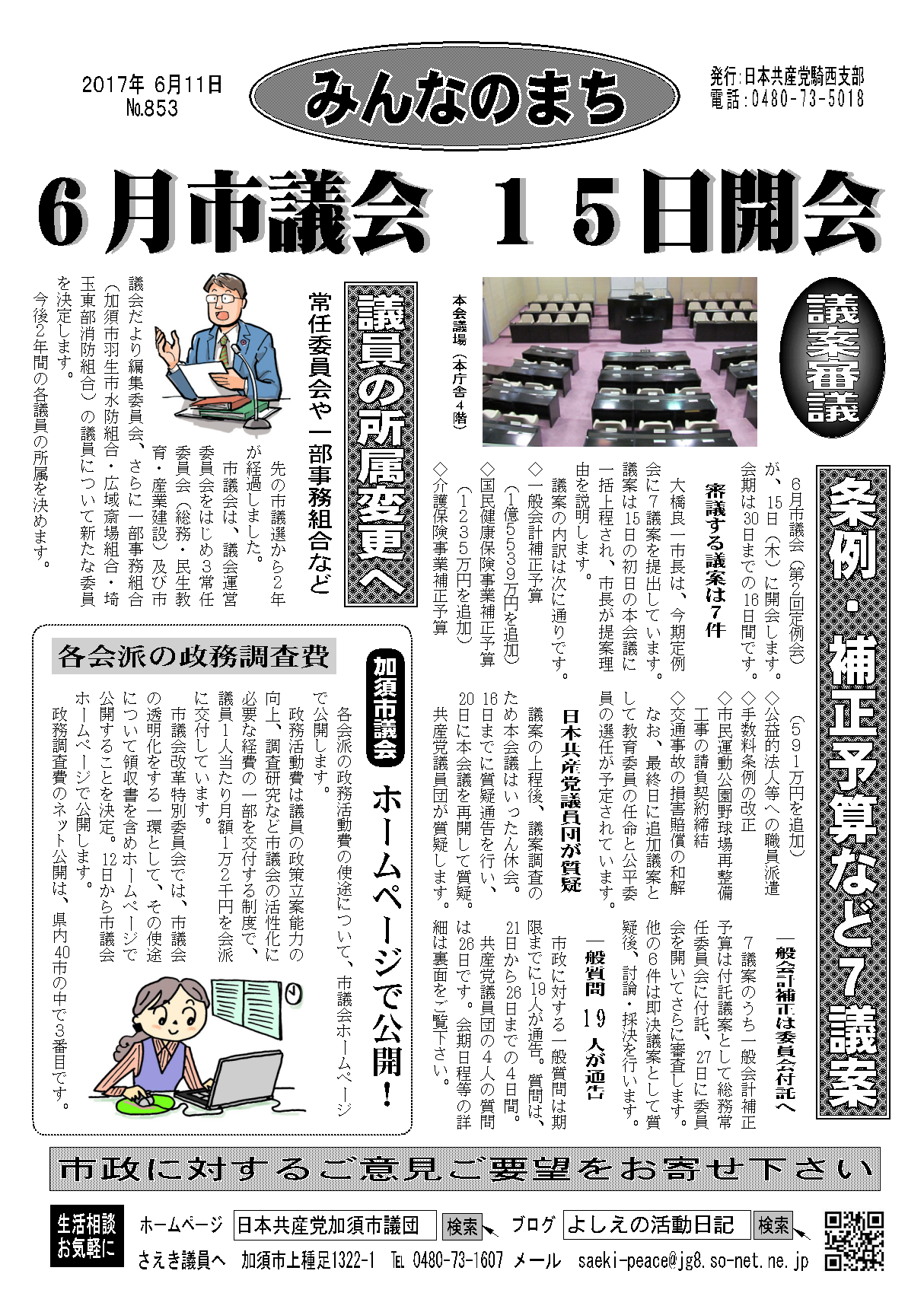 6月市議会が15日に開会します。会期は30日までの16日間です。
