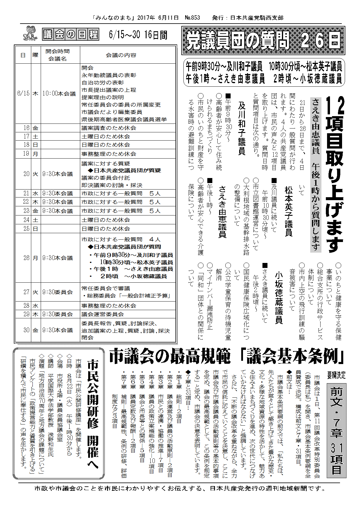 20日 火 本会議 9:30 議案質疑 党議員団が質疑します