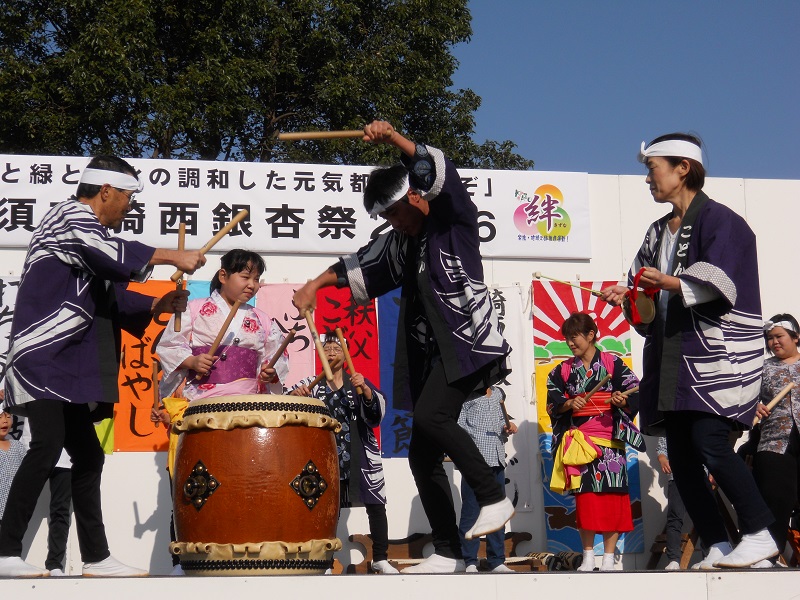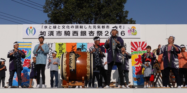 6日、素晴らしい秋晴れのもと、騎西銀杏祭が開催されました。私が入っている太鼓サークルは、朝からまつりを市民に知らせる「呼び込み太鼓」を演奏。