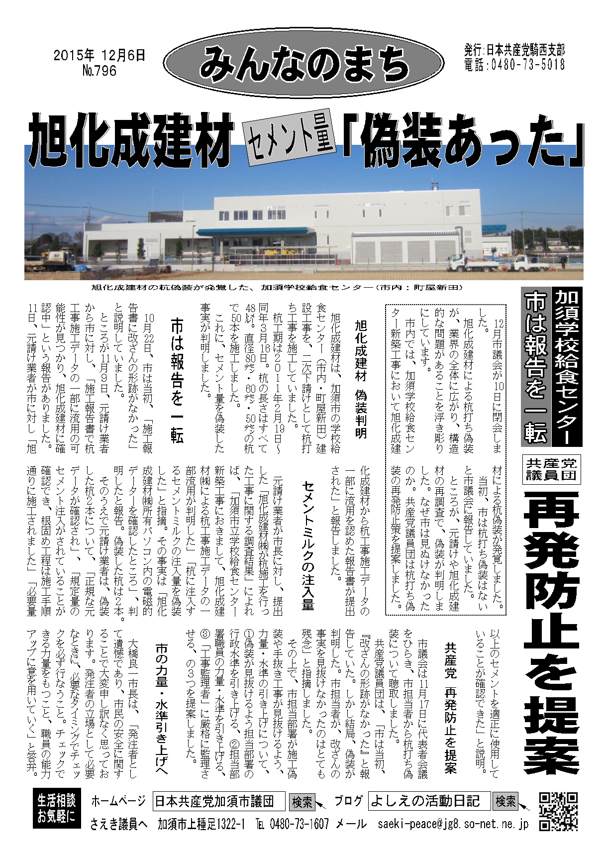 しかし、補正予算について、市民の立場から総合的に分析した場合、市民のプライバシーと個人情報の保護、明日の加須市を担う子どもたちに快適な環境の下で学びの場を提供する、環境負荷低減とリサイクル推進の立場から、どうしても容認できない基本的な問題が含まれています。以下、列挙します。