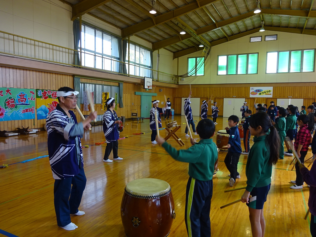 私は、和太鼓のサークルの一員として、かねてから地元小学校より依頼があった、和太鼓の授業に参加しました。